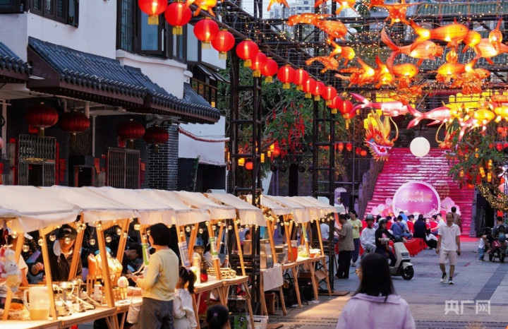 2026年海口府城元宵换花艺术周活动现场张灯结彩(央广网记者付美斌摄)
